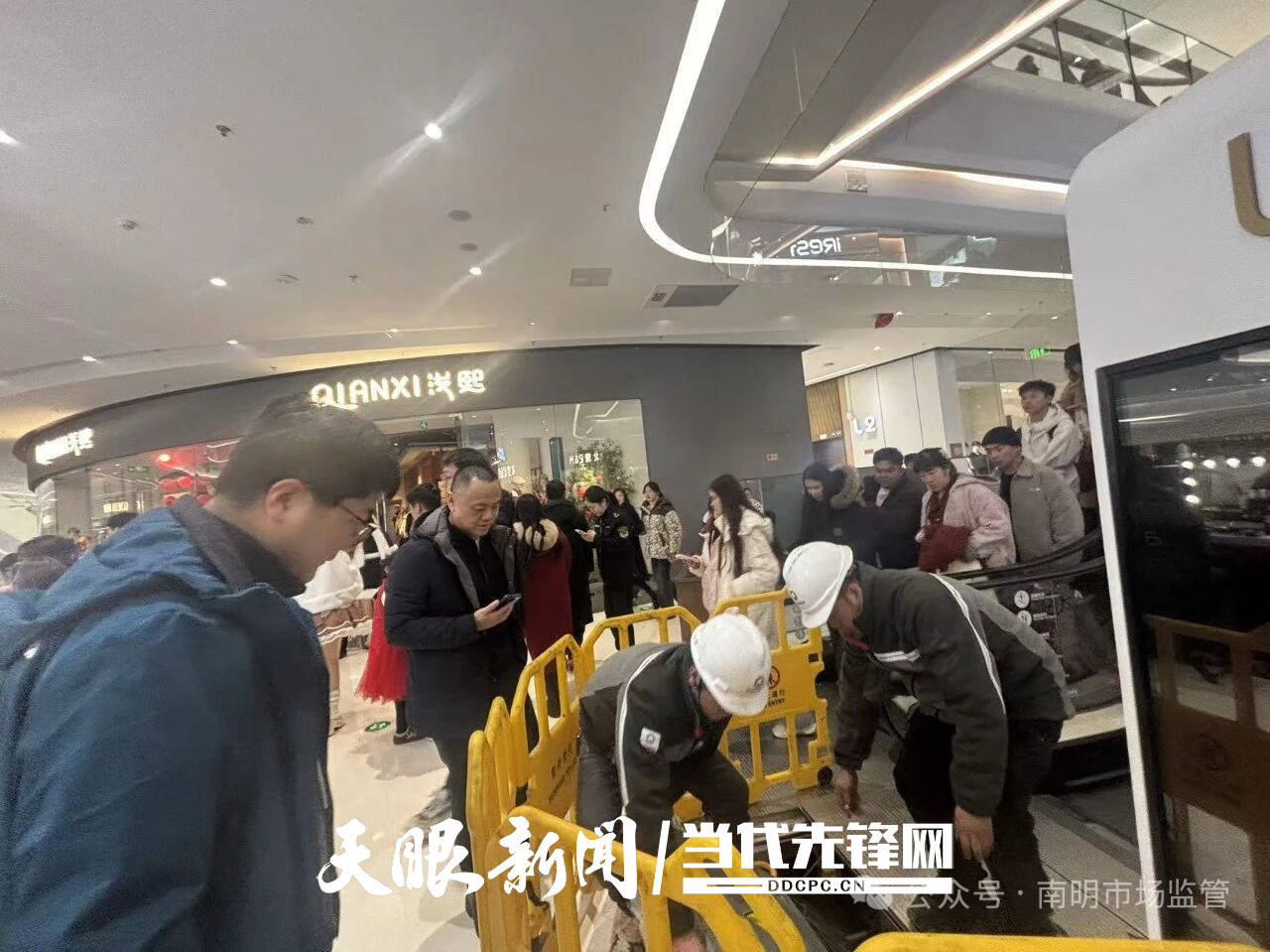 “客流较大,请有序乘梯;紧握扶手,坐稳扶好……”南明区市场监管局的法律人员手持小喇叭,对花果园区域户外电梯和地铁电梯乘客进行有序指导。正在指导客流的根本上,同时督促电梯维保单元做好现患排查和应急值守,确保发生告急环境快速响应、快速措置,全力保障群众乘梯平安。